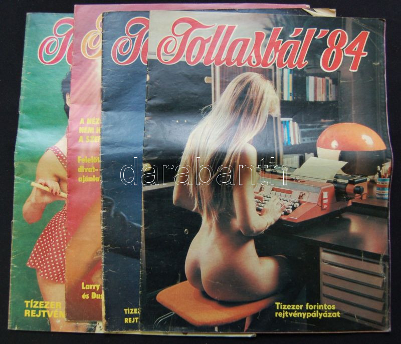 https://www.darabanth.com/en/146-Online-auction/146.0/Other-collectibles/Printed-Materials~240/1980-1986-Tollasbal-4-db-erotikus-kepes-magazin~II438776