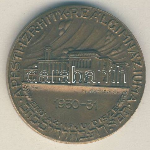 https://www.darabanth.com/en/147-Online-auction/147.0/Numismatics/Hungarian-commemorative-medals-plaques-badges~500113/1930-31-A-Pesti-Izraelita-Hitkozseg-Realgimnaziuma-Br-emlekerem-Szign-Szekely-G-38mm~II439887