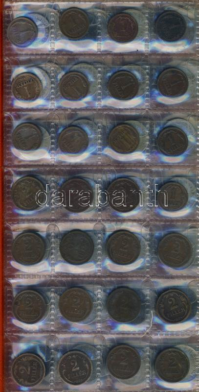 Magyar és osztrák fillér gyűjtemény klf évszámokkal, közte 2db 1P Ag. ...