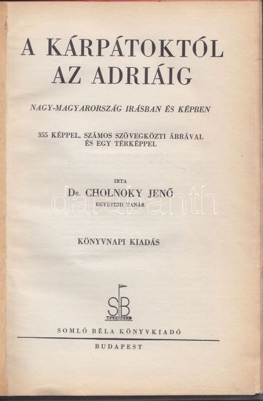 Cholnoky Jenő: A Kárpátoktól az Adriáig.- Nagy-Magyarország írásban és... https://www.darabanth.com/en/147-Online-auction/147.0/Other-collectibles/Books-Travelling-cities~227/Cholnoky-Jeno-A-Karpatoktol-az-Adriaig-Nagy-Magyarorszag-irasban-es-kepben-A-konyv-te~II430803