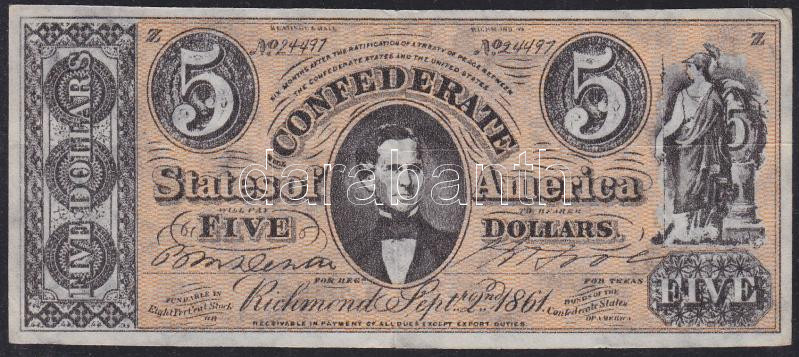 https://www.darabanth.com/en/148-Online-auction/148.0/Numismatics/Foreign-banknotes~500120/Amerikai-Konfoderacios-Allamok-1861Sept2-5USD-modern-masolat-TII--Confederate-States-Of-Ame~II447015