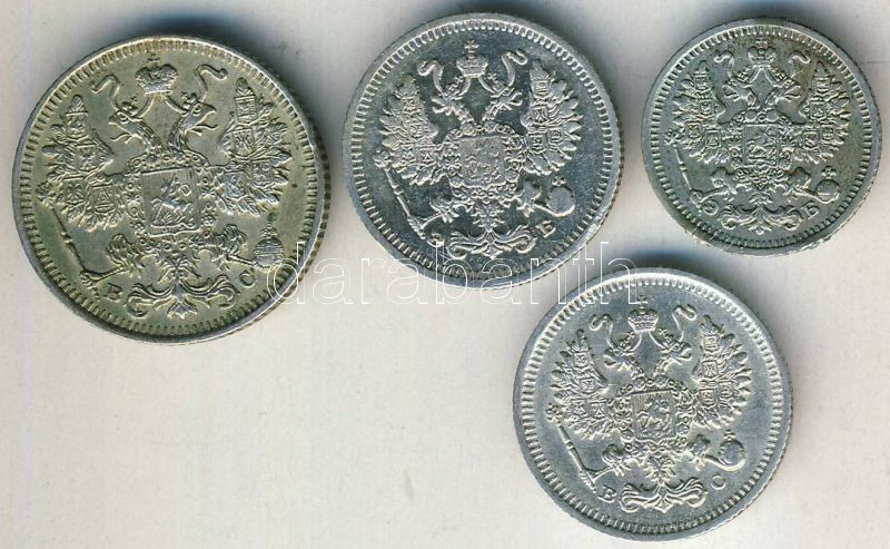 Cári Oroszország 1910. 5k Ag + 10k Ag + 1915. 10k Ag + 1916. 15k Ag T:...