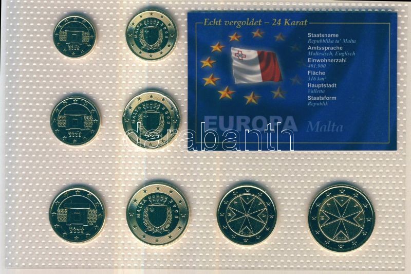 Málta 2008. 1c-2€ 8 különféle db szettben, aranyozott (24K) kiad... https://www.darabanth.com/en/148-Online-auction/148.0/Numismatics/Foreign-coins~500121/Malta-2008-1c-2238364-8-kulonfele-db-szettben-aranyozott-24K-kiadas-tanusitvannyal-T1~II446185
