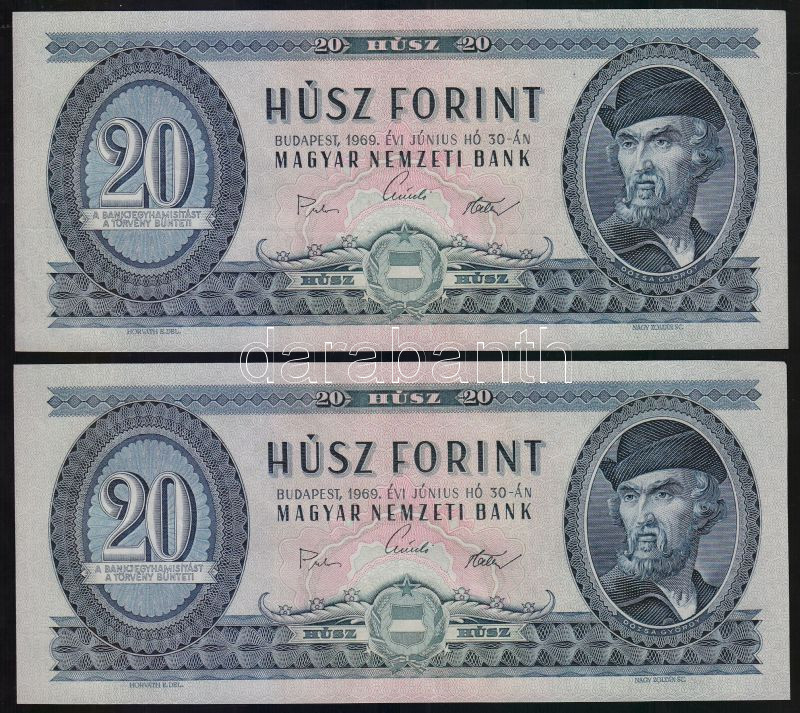 1969. 20Ft (2x) egymásutáni sorszámmal! T:I,I-