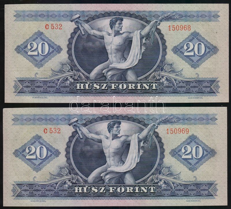 https://www.darabanth.com/en/148-Online-auction/148.0/Numismatics/Hungarian-Banknotes~500116/1969-20Ft-2x-egymasutani-sorszammal-TI-I-~II394833