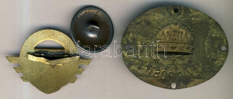 B.SZ.K.Rt. gomb + "Budapesti Közlekedési Vállalat" jelvény + "M.Kir.Posta" övcsat T:2,3