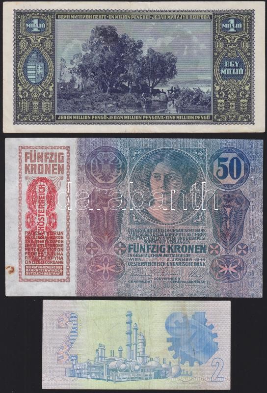 7db különféle bankjegy, közte: 1914. 50K "Deutschösterreich" felülbély...