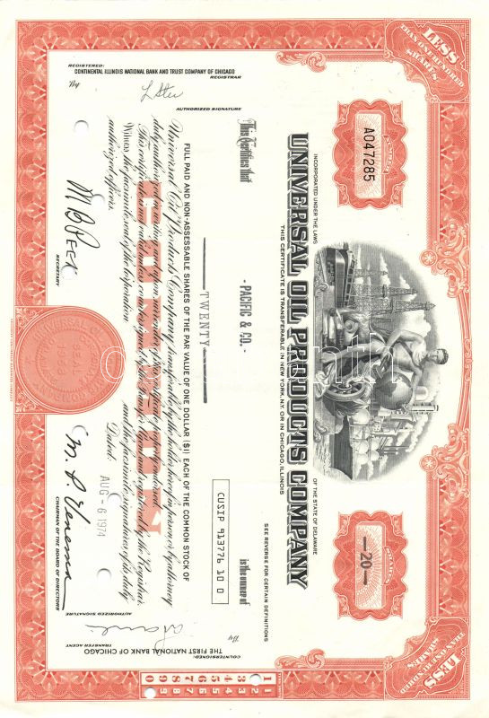 USA / Delaware 1974. Universal Oil Products vállalat részvénye T:I