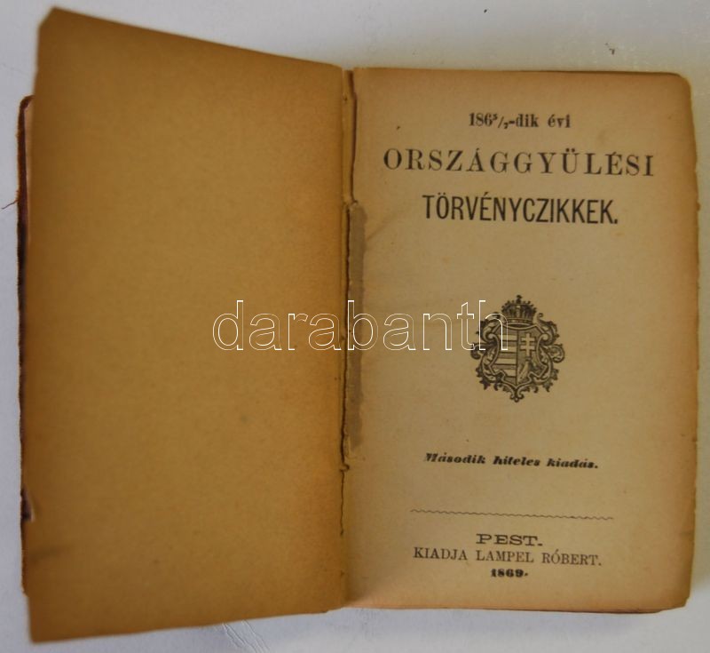 Az 1865-67 és az 1868-ik évi országgyűlési törvényczikkek, és a polgár... https://www.darabanth.com/en/148-Online-auction/148.0/Other-collectibles/Historical-documents-manuscripts~500018/Az-1865-67-es-az-1868-ik-evi-orszaggyulesi-torvenyczikkek-es-a-polgari-perrendtartas-A-t~II444151