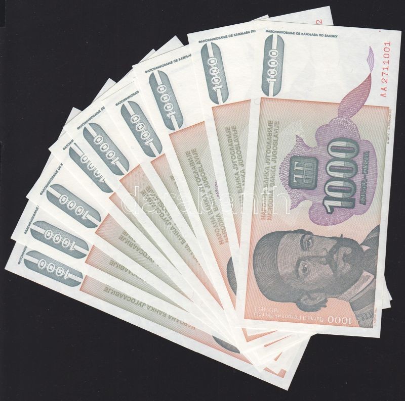 Jugoszlávia 1994. 10D (10x) + 100D (10x) + 1000D (10x) T:I
