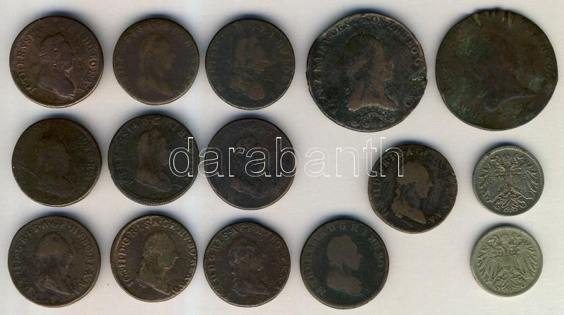 Ausztria / Austria tétel, benne: 1780-1790. 1Kr (11x) többféle verdejellel (with different mint marks) + 1800. 6K + 1812. 3K + 1909-1916. 10f (2x) T:vegyes / C:Mixed