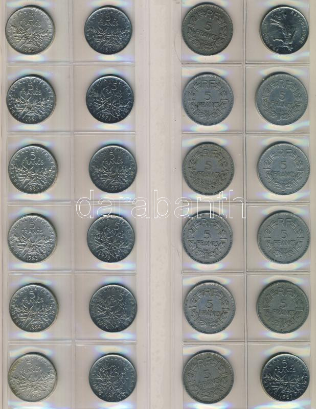 Franciaország 1935-1950. 5Fr (10x) + 1960-1987. 5Fr Ag (14x) mind klf ... https://www.darabanth.com/en/149-Online-auction/149.0/Numismatics/Foreign-coins~600112/Franciaorszag-1935-1950-5Fr-10x-plus-1960-1987-5Fr-Ag-14x-mind-klf-darab-Tvegyes---France-19~II450468