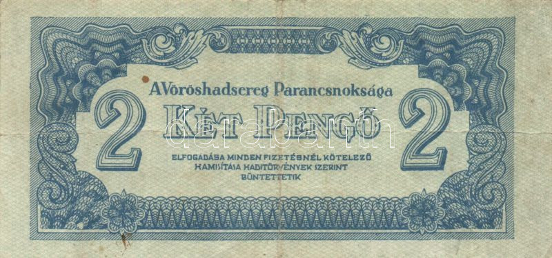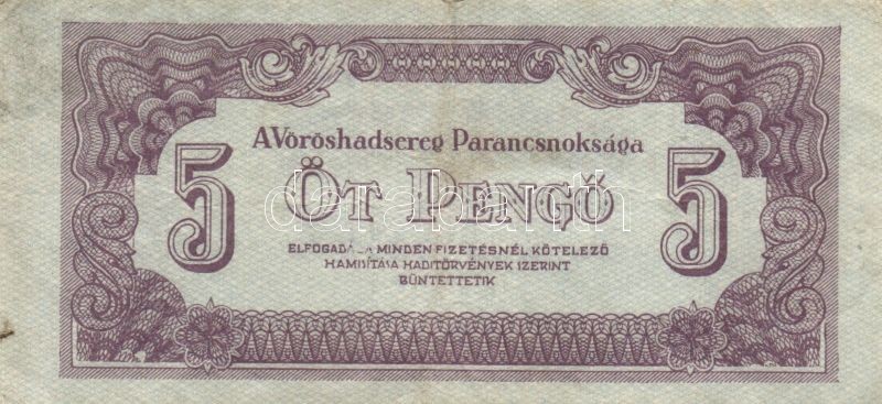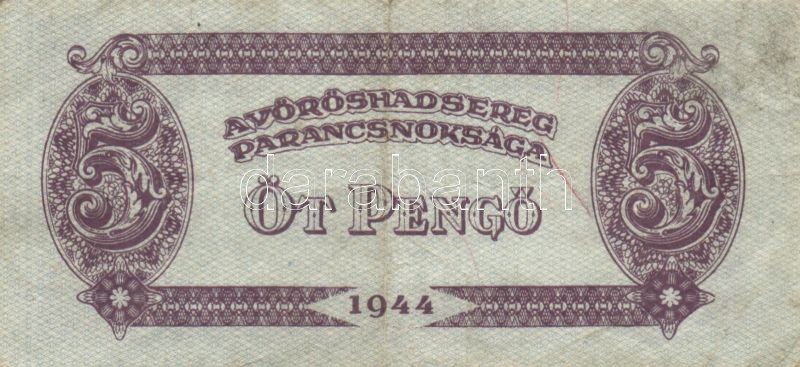 https://www.darabanth.com/en/149-Online-auction/149.0/Numismatics/Hungarian-Banknotes~600100/1944-A-Voroshadsereg-Parancsnoksaga-2P-plus-5P-nyitott-ekezettel-TIII~II450477