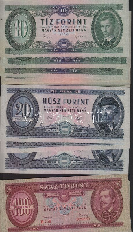 https://www.darabanth.com/en/149-Online-auction/149.0/Numismatics/Hungarian-Banknotes~600100/1957-75-10Ft-9x-plus-20Ft-3x-plus-100Ft-10x-TI-II-II-~II452165