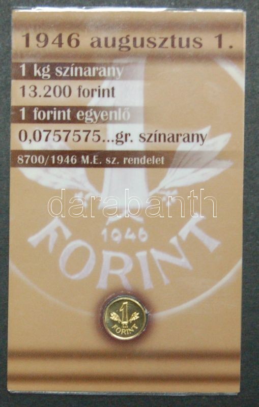 https://www.darabanth.com/en/149-Online-auction/149.0/Numismatics/Hungarian-and-foreign-gold-coins~600103/1946-1Ft-Mini-veret-arany-Au-999-9-0-5gr-diszcsomagolasban-tanusitvannyal-TBU~II450533