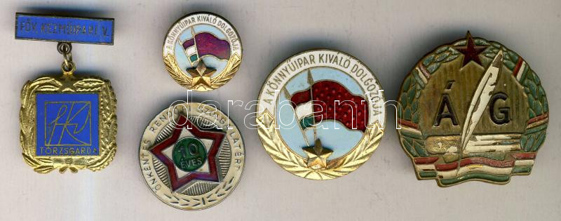 DN. 5db klf szocialista kitűző, mint: "A könnyűipar kiváló dolgozója", "Önkéntes rendőri szolgálatért" vagy "Fővárosi Kézműipari Vállalat" T:vegyes