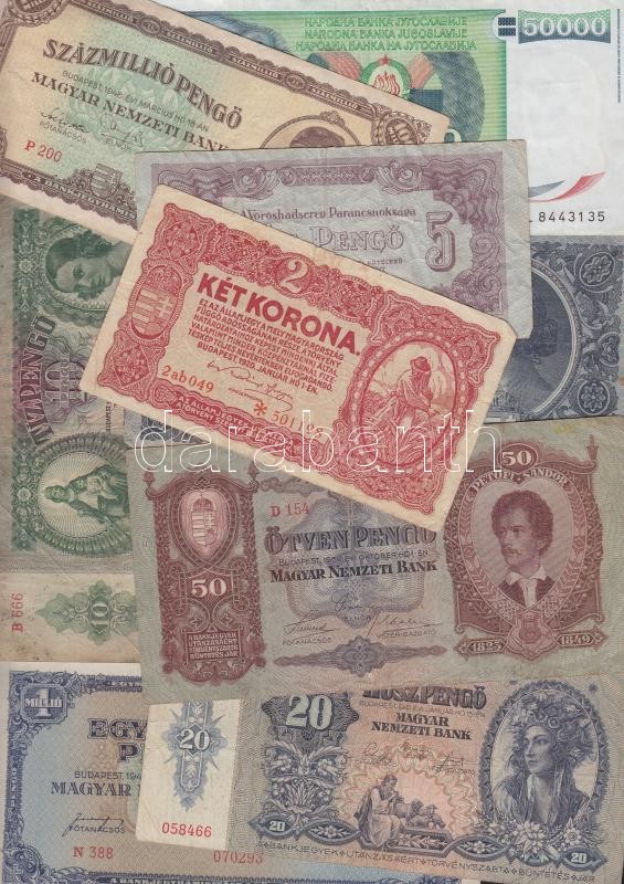Vegyes bankjegy tétel, összesen 62db magyar koronák, pengők, forintok, emellett néhány külföldi bankjegy is T:vegyes