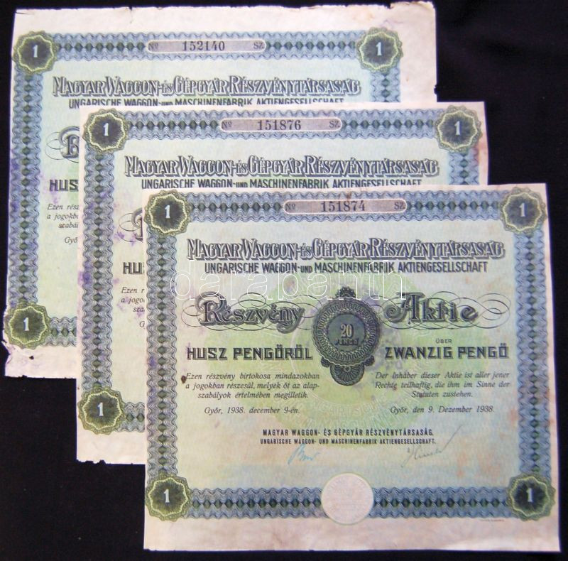 https://www.darabanth.com/en/149-Online-auction/149.0/Numismatics/Shares-Securities-and-Tickets~600098/Gyor-1938-Magyar-Waggon-es-Gepgyar-Reszvenytarsasag-20P-rol-szolo-reszvenye-3x-kozt~II452777