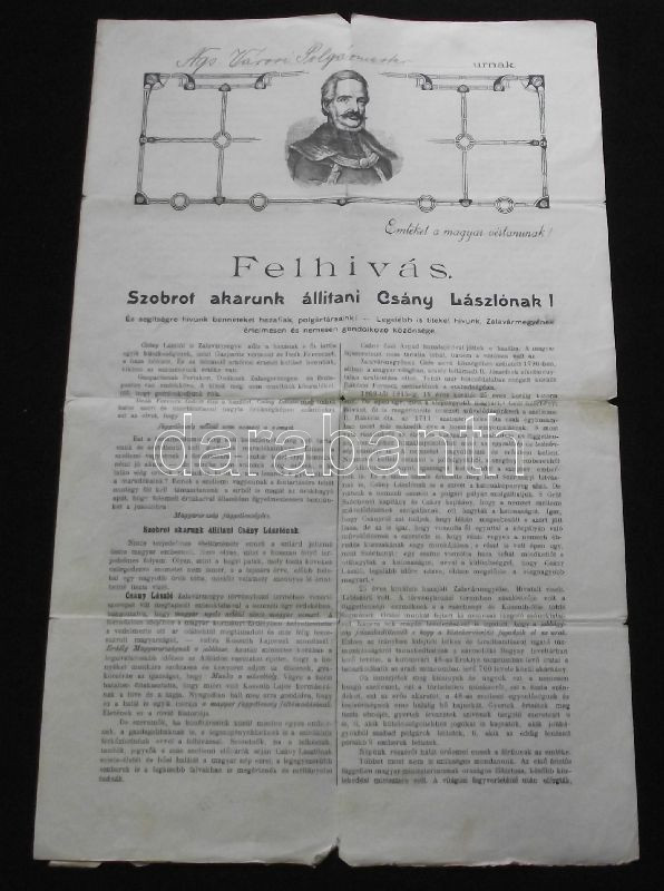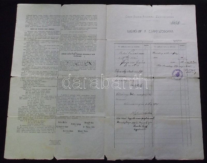 https://www.darabanth.com/en/149-Online-auction/149.0/Other-collectibles/Historical-documents-manuscripts~197/1907-Kitoltott-gyujtoiv-a-zalaegerszegi-Csany-szobor-felallitasara-nyomtatvanykent-elku~II453285