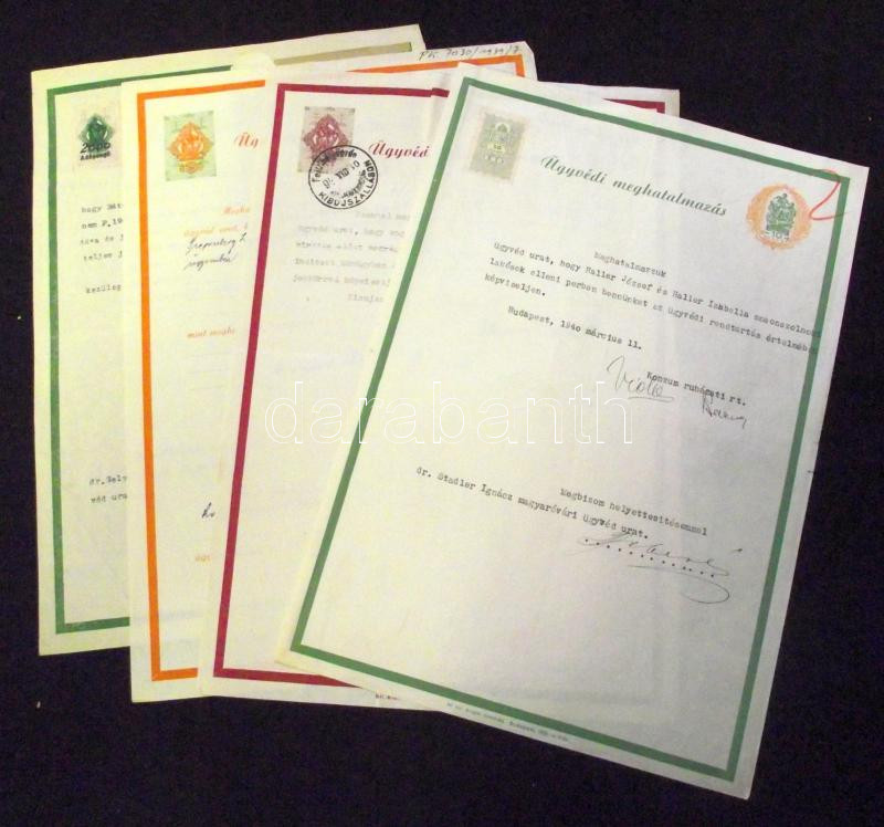 4 db ügyvédi meghatalmazás a 40-es évekből klf értékbenyomásokkal