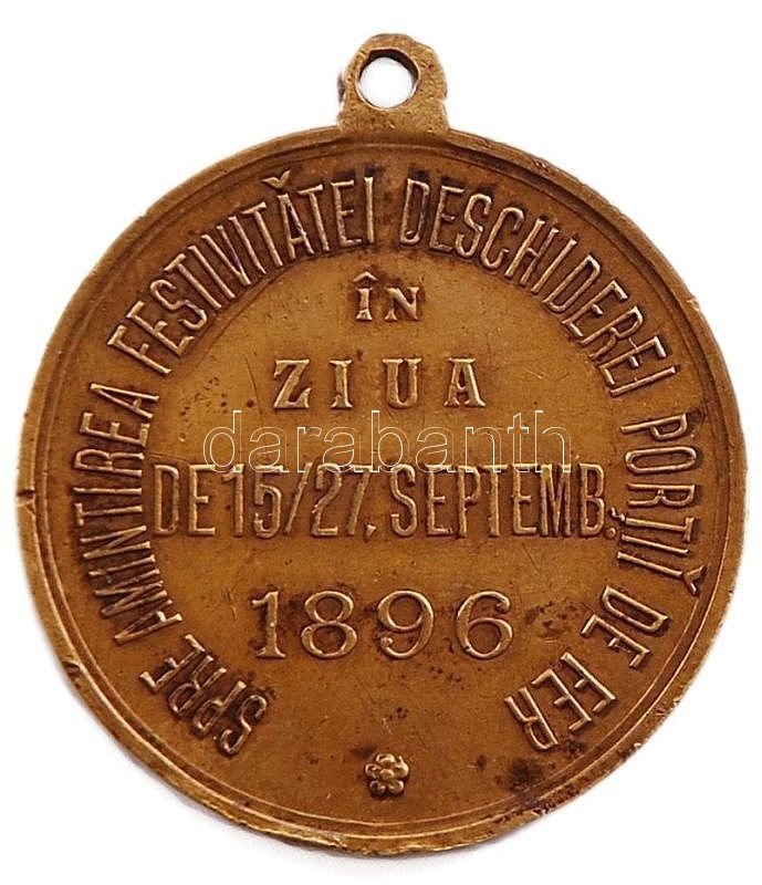 Description: Románia 1896. "Vaskapu-szoros megnyitása" Br emlékérem E: Károly román király, Sándor szerb király és Ferenc József magyar király; H: román szöveg és dátum (29mm) T:2
