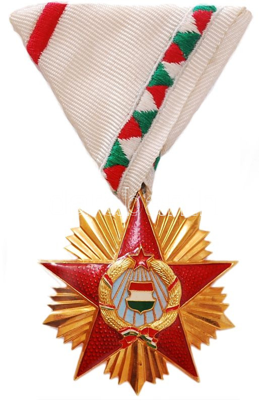 1957. "A Magyar Népköztársaság Érdemrendje" 1957-es címer, aranyozott ... https://www.darabanth.com/en/15-Major-auction/15.1/Numismatics/Military-and-Faleristics~4536/1957-A-Magyar-Nepkoztarsasag-Erdemrendje-1957-es-cimer-aranyozott-Br-kituntetes-mellszal~II617571