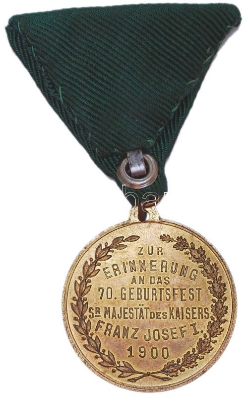 Ausztria 1900. "Ferenc József 70. születésnapja" Br emlékmedál zld mel... https://www.darabanth.com/en/15-Major-auction/15.1/Numismatics/Military-and-Faleristics~4536/Ausztria-1900-Ferenc-Jozsef-70-szuletesnapja-Br-emlekmedal-zld-mellszalagon-T2-3Cbr3EAustri~II610278