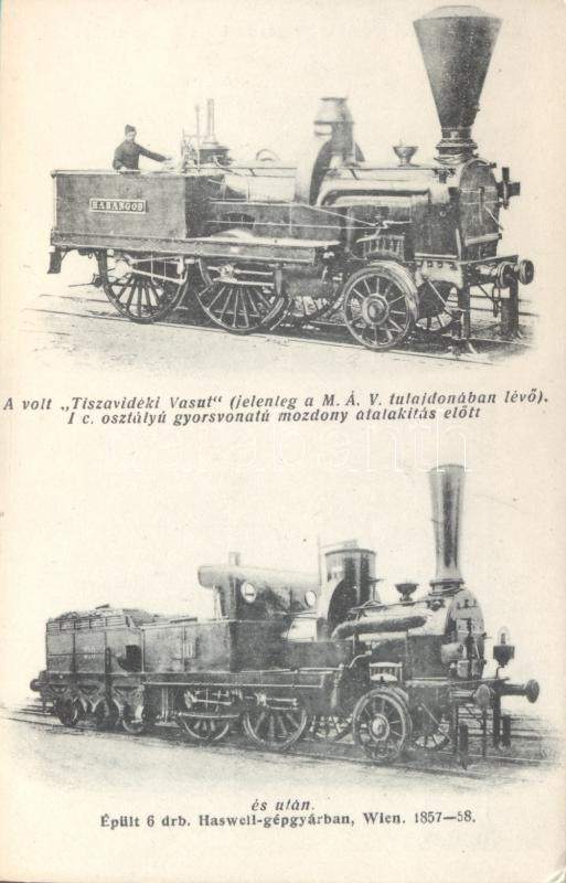 https://www.darabanth.com/en/15-Major-auction/15.1/Thematic-postcards/Railway~4639/A-volt-Tiszavideki-vasut-Ic-oszt-gyorsvonatu-mozdonya-atalakitas-elott-es-utan-Hungaria~II611128