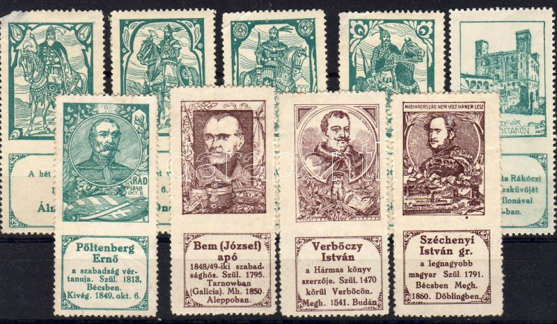 Parafilatélia 9 db levélzáró magyar történelmi alakok
