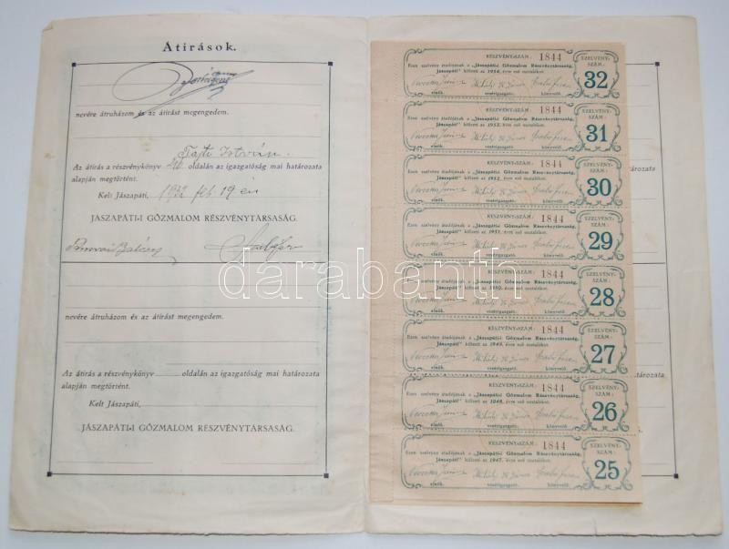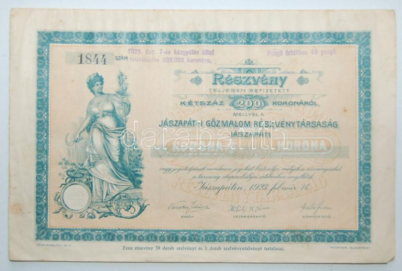 https://www.darabanth.com/en/150-Online-auction/150.0/Numismatics/Shares-Securities-and-Tickets~6/Jaszapati-1923-Jaszapati-Gozmalom-Reszvenytarsasag-reszvenye-200K-rol-szelvenyekkel-~II455516