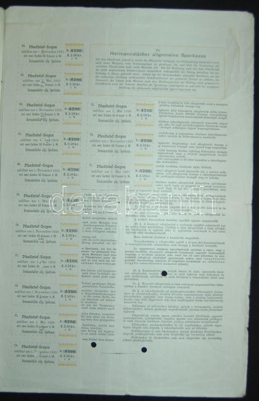 Description: Nagyszeben 1892. "Nagyszebeni Általános Takarékpénztár" Záloglevele 100Ft-ról német és magyar nyelven szelvényekkel és szárazpecséttel (kissé gyűrött,néhol szakadt)