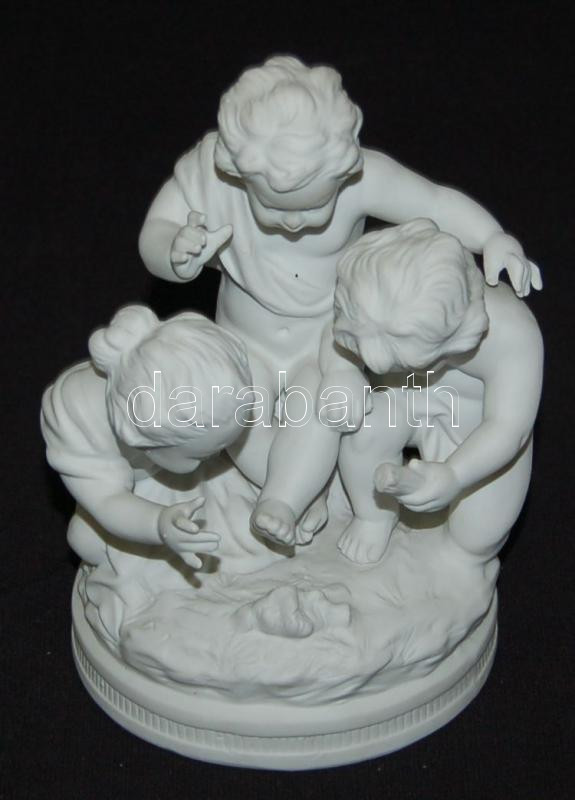 3 gyermeket ábrázoló festetlen jelzés nélküli sorszámozott porcelán fi...
