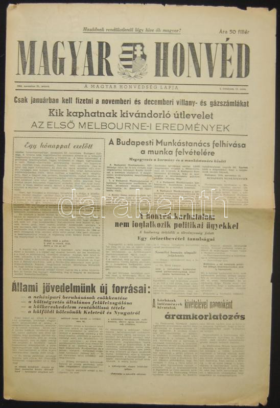 1956 A Magyar Honvéd november 23.-i száma a forradalom híreivel