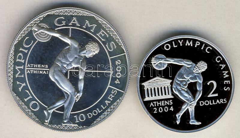 Description: Cook-szigetek 2001. 10$ Ag "Nyári Olimpia Athén" + 2002. 2$ Ag "Nyári Olimpia Athén" T:PP