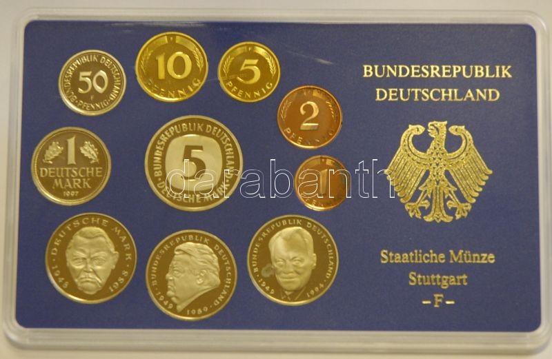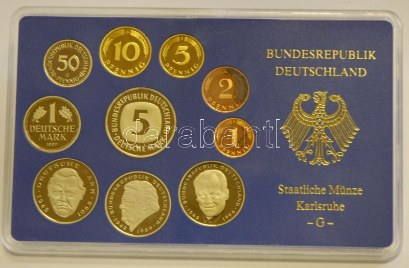 NSZK 1997. 50Pf-5M 10klf pénzérme szettben, (5x) A,D,F,G,J verdejellel T:PP