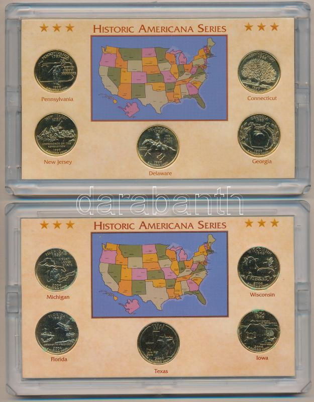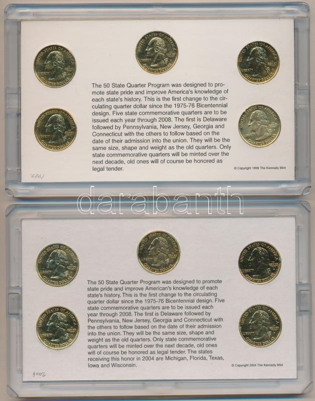 USA 1999. 1/4$ (5x) 5klf aranyozott emlékpénz dísztokban ismertetővel + 2004. 1/4$ (5x) 5klf aranyozott emlékpénz dísztokban ismertetővel T:1