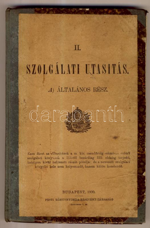 https://www.darabanth.com/en/151-Online-auction/151.0/Other-collectibles/Books-Military~500020/1900-Szolgalati-utasitas-a-Magyar-Kiralyi-Csendorseg-szamara-Pesti-Konyvnyomda-Rt~II463232