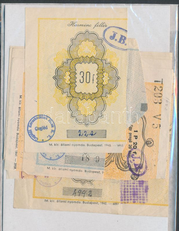 1940-1943 8 db váltóűrlap-szelvény (Flóderer: 478, 481, 485, 497, 499,...