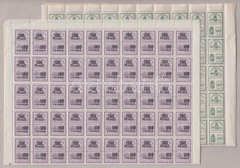 1945 Számlailletékbélyeg 100P + 500P , hajtott teljes ívek