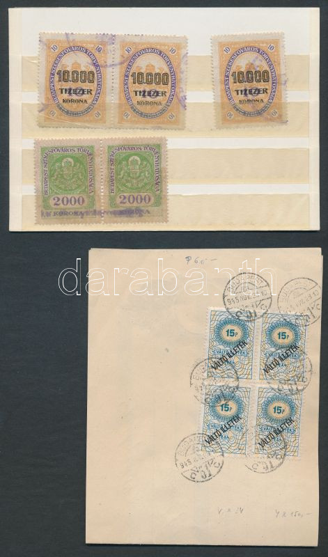 9 db okmánybélyeg és 1 szignetta (5 db okmányon) + 5 db Budapesti váro...