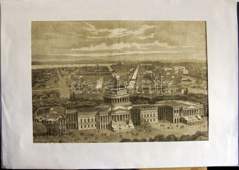 cca 1880 4 db régi metszet: A Fehér ház építése 36x25 cm + 2 db Gariba...