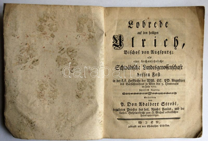 https://www.darabanth.com/en/151-Online-auction/151.0/Other-collectibles/Forgeign-language-books~500022/cca-1800-Lobrede-auf-den-Heiligen-Ulrich-Bischoff-von-Augspurg-Wien-26p-egy-metszettel-Papirkot~II464071