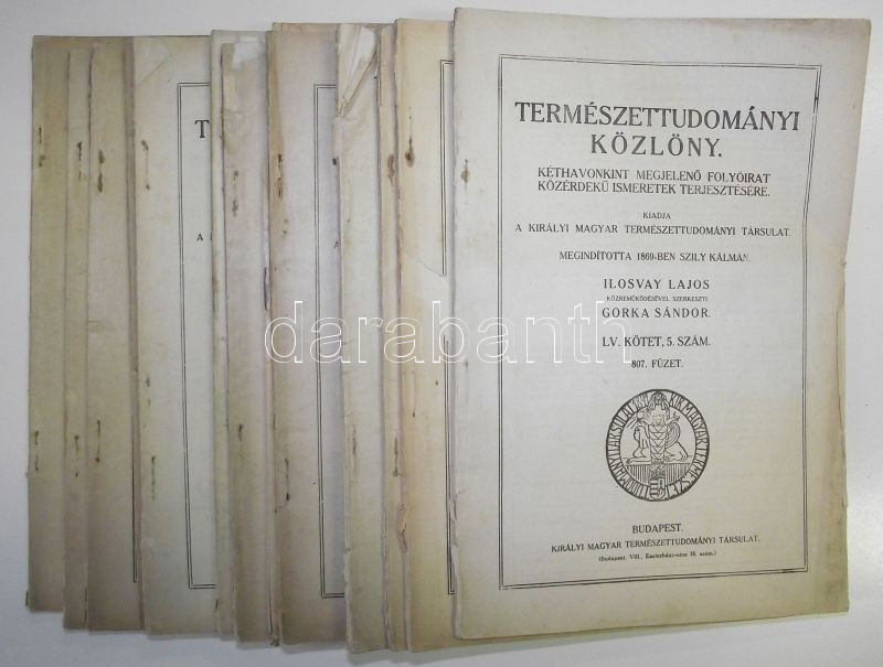 1923 Természettudományi közlöny 13 db száma, kéthavonta megjelent foly... https://www.darabanth.com/en/151-Online-auction/151.0/Other-collectibles/Printed-Materials~500016/1923-Termeszettudomanyi-kozlony-13-db-szama-kethavonta-megjelent-folyoirat-kozerdeku-isme~II425055