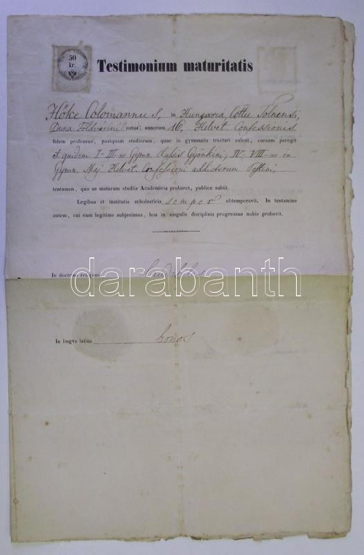 https://www.darabanth.com/en/151-Online-auction/151.0/Other-collectibles/Signature~500006/1866-A-Dunafoldvari-Reformatus-Kozeptanoda-erettsegi-bizonyitvanya-Gonczy-Pal-rektor-es~II460354