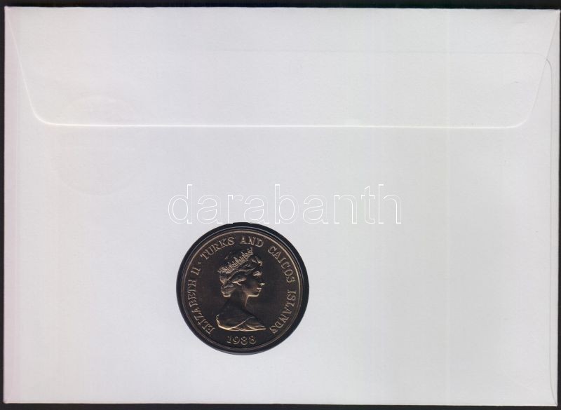 Turks & Caicos szigetek 1988. 1C "Iguana" érmés, bélyeges borítékon T:BU Ismertetővel!