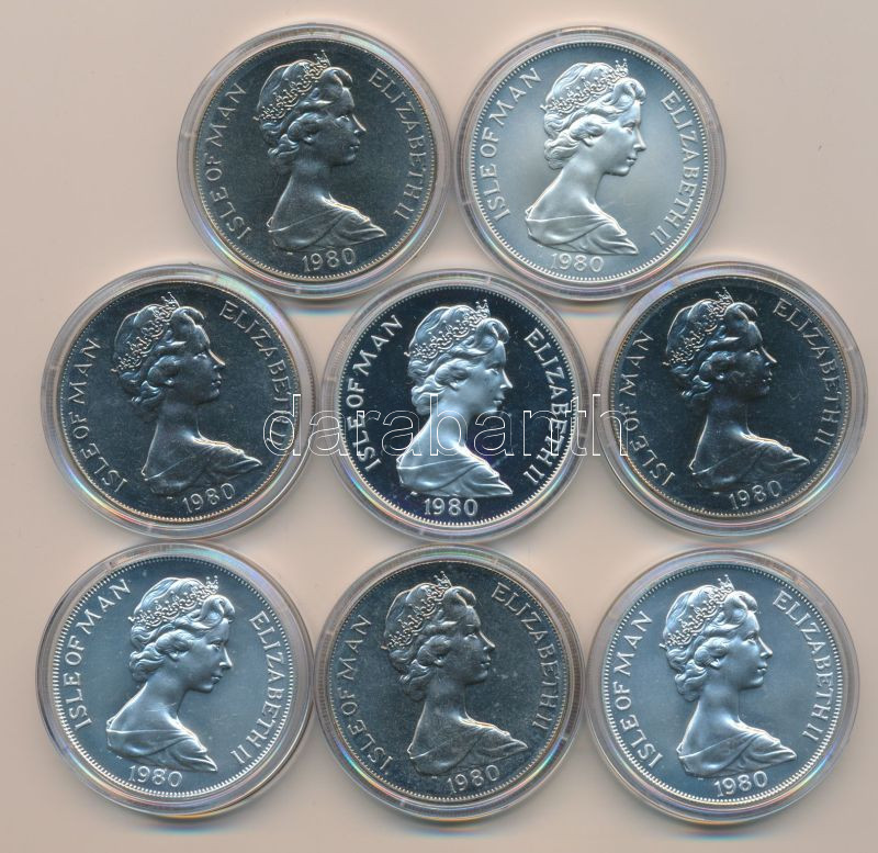 Description: Man-sziget 1980. 1C (8x) 4 klf variáns pár (CuNi+Ag) "1980. Lake Placid Téli Olimpia" T:BU,1 /