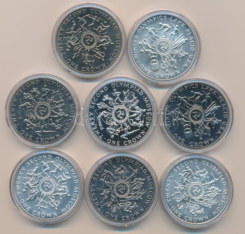Isle of Man 1980. 1 Crown (8x) 4 different type pairs (CuNi+Ag) "1980 Winter Olympics - Lake Placid" C:BU,UNC