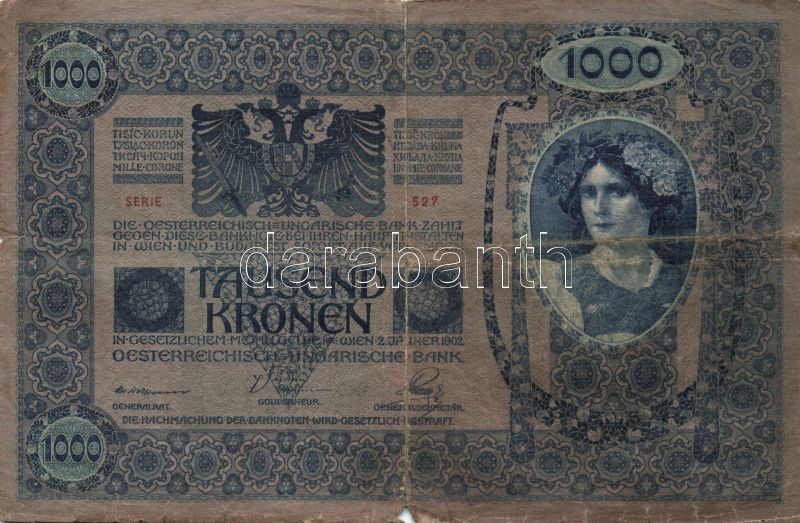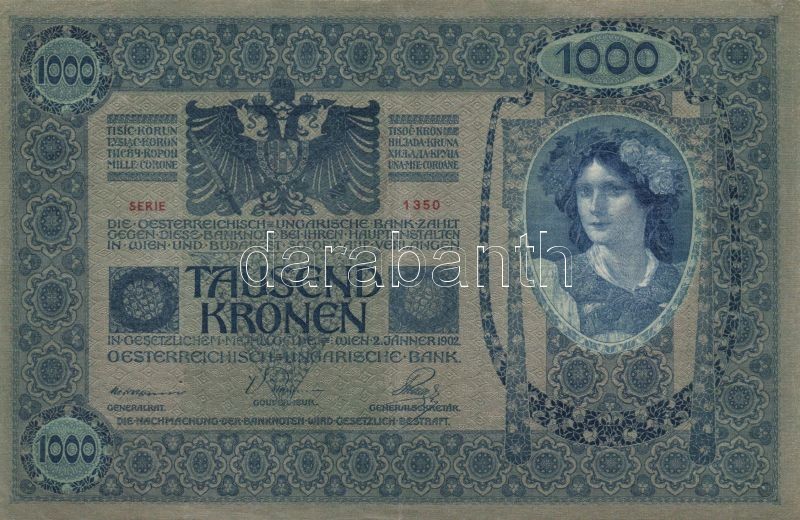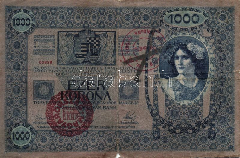 1902. 1000K (2x) egyik "Magyarország" piros körbélyegzéssel és mindket... https://www.darabanth.com/en/152-Online-auction/152.0/Numismatics/Hungarian-Banknotes~700010/1902-1000K-2x-egyik-Magyarorszag-piros-korbelyegzessel-es-mindketto-IV-Sz-Varosi-KerC3~II469092