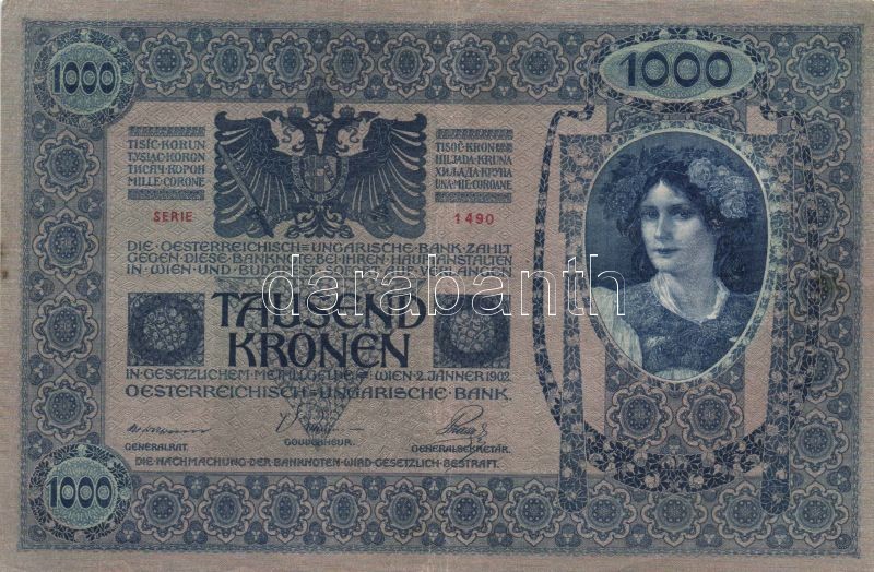 https://www.darabanth.com/en/152-Online-auction/152.0/Numismatics/Hungarian-Banknotes~700010/1902-1000K-felulnyomas-nelkul-TII-~II472515