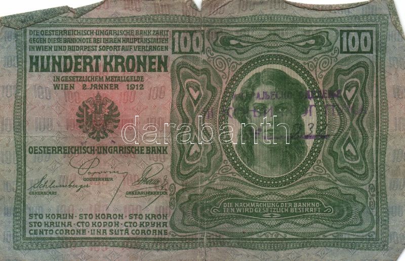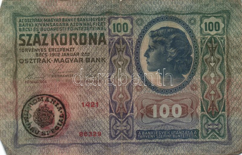 https://www.darabanth.com/en/152-Online-auction/152.0/Numismatics/Hungarian-Banknotes~700010/1912-100K-2x-szerb-es-roman-felulbelyegzessel-TIV-III~II472776